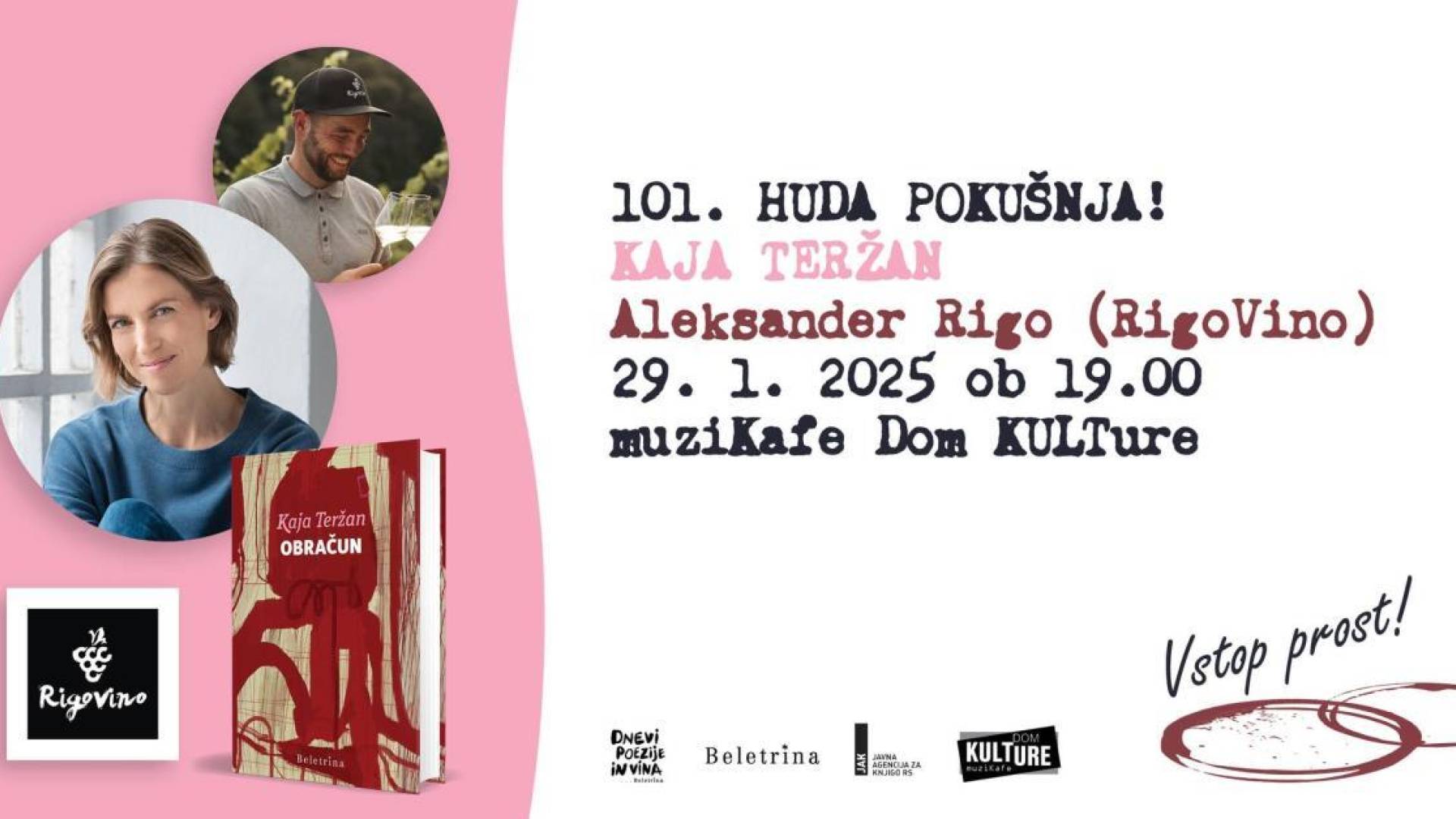 Vrazov trg 1, 2250 PtujKakorkoli obrnemo – ali gre za prvo po novem štetju ali stoprvo po starem – januarska Huda pokušnja! se hitro približuje. Tokratni večer prinaša izjemna gosta: pesnico Kajo Teržan, ki bo predstavila svoje prvo prozno delo Obračun, ter vinarja Aleksandra Riga, ustvarjalca prepoznavne blagovne znamke vin RigoVino.
