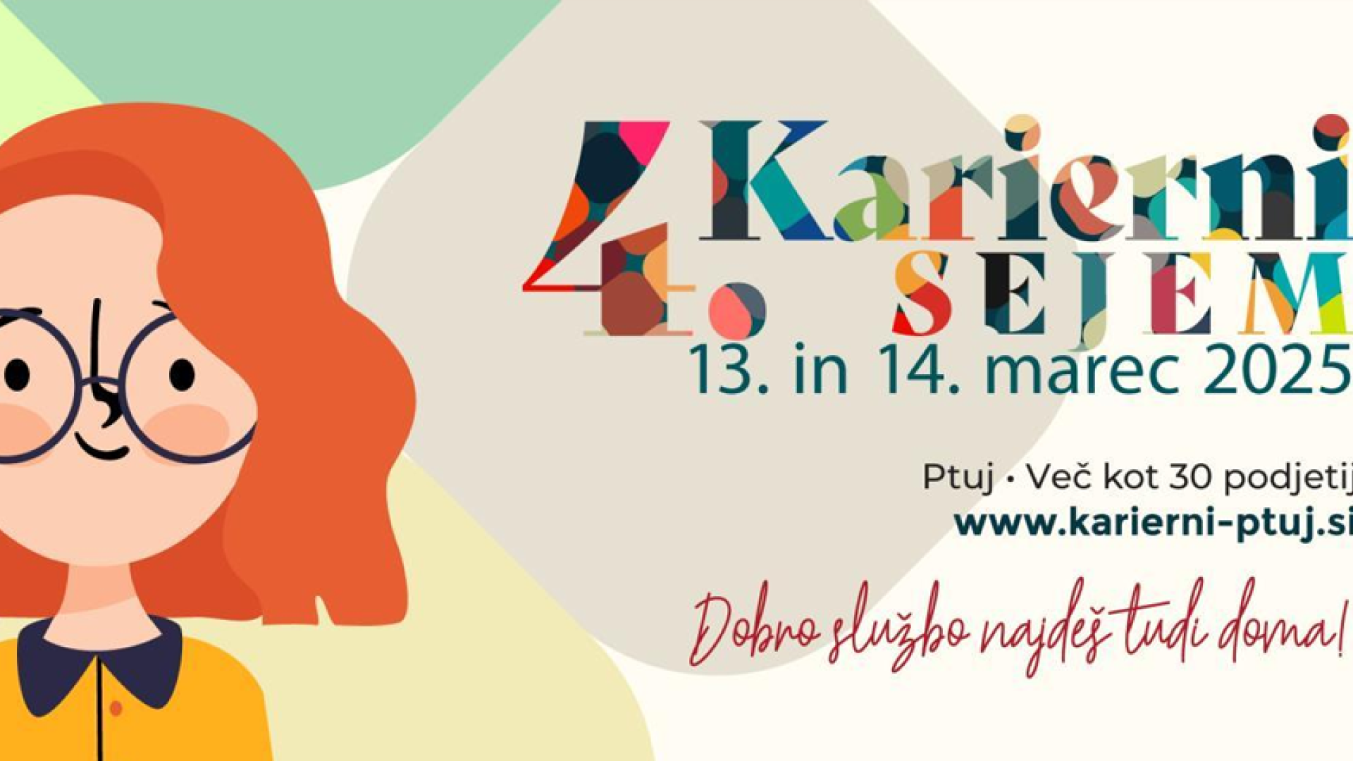 Lokalni dogodek, ki prerašča v tradicionalnega, poteka pod sloganom »Dobro službo najdeš tudi doma!«, namenjamo osnovnošolcem, srednješolcem, študentom ter iskalcem prve ali nove zaposlitve. Ker verjamemo, da »DOBRO SLUŽBO NAJDEŠ TUDI DOMA!«, vas vljudno vabimo, da pravočasno potrdite svojo udeležbo, z aktivno prisotnostjo na 3.kariernem sejmu na Ptuju pa neposredno nagovorite učence, dijake in študente, jim na zanimiv način predstavite koristne informacije o vašem podjetju, pojasnite katera znanja in veščine so iskane na aktualnem trgu dela in jim tudi osebno zagotovite, da lahko dobro službo najdejo tudi pri vas.