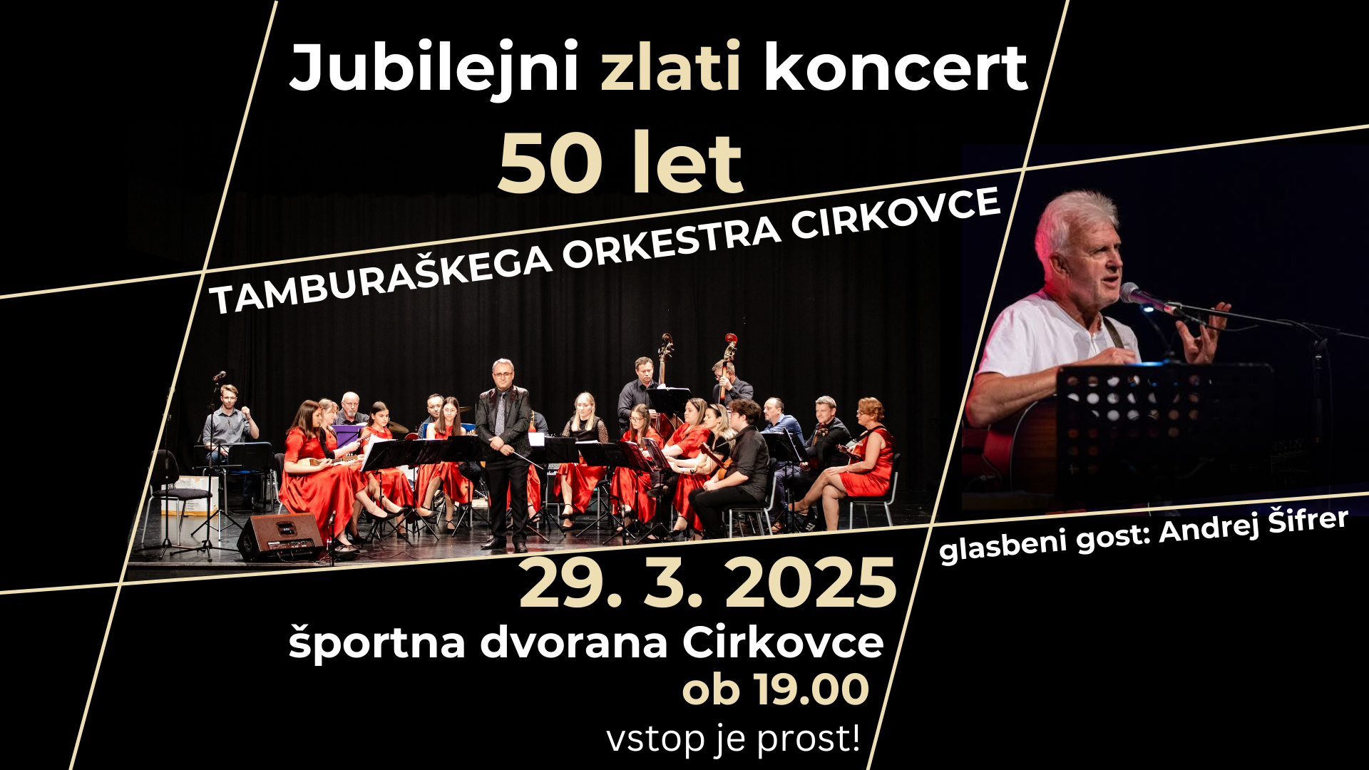 Športna dvorana CirkovceDne 29. 3. 2025 ob 19:00 praznujemo Cirkovški tamburaši 50. obletnico našega delovanja, dogodek pa bo potekal v Cirkovški večnamenski dvorani (Cirkovce 48, 2326 Cirkovce). Slavni gost bo Andrej Šifrer, vstop pa je prost.