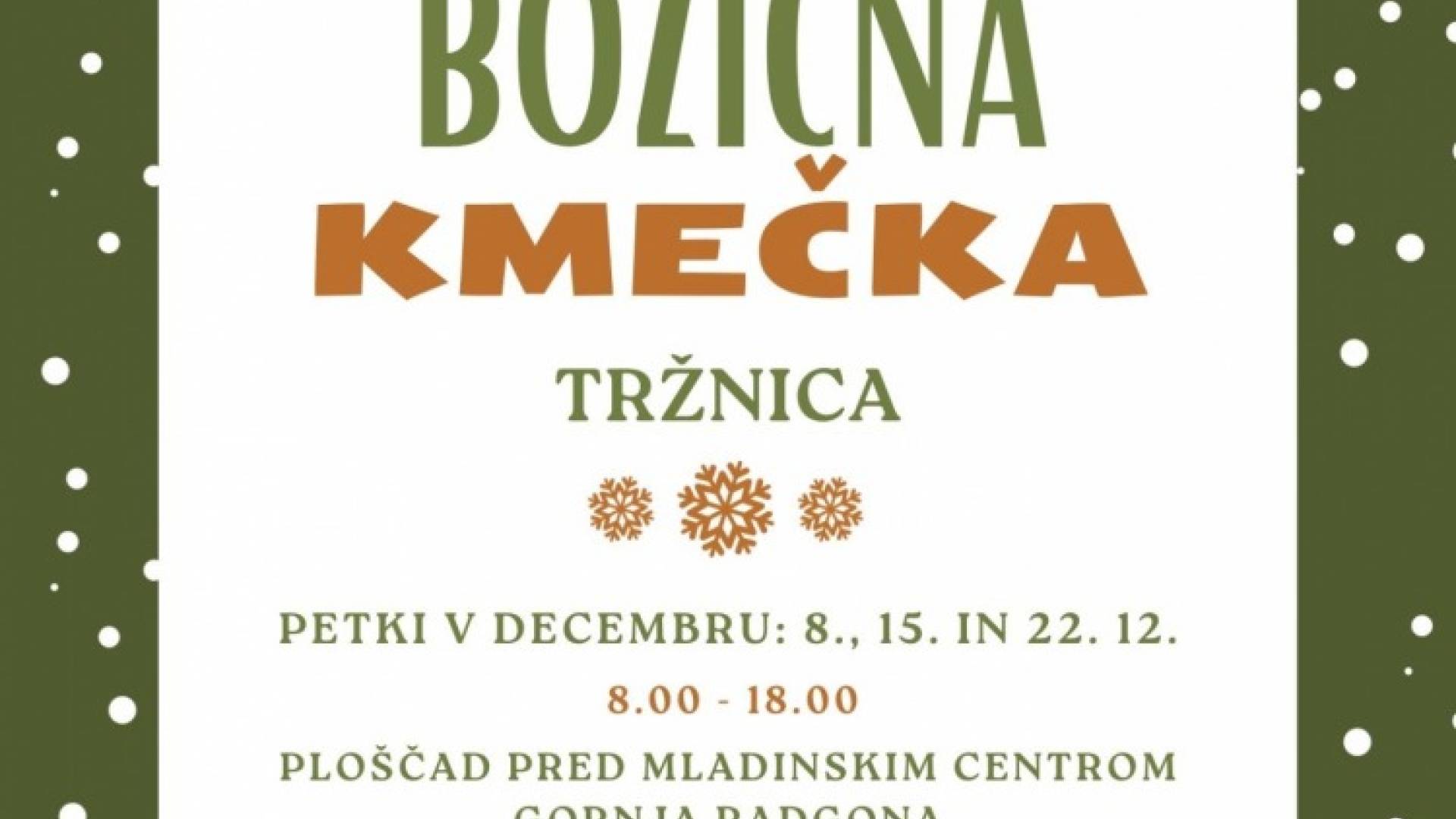Tako bodo petki 2023 (8., 15. in 22. 12. 2023) med 8. in 18. uro na ploščadi pred Mladinskim centrom Gornja Radgona praznično obarvani s praznično ponudbo, kuhanim vinom in ostalim napitki in dobrotami ob božični glasbi.