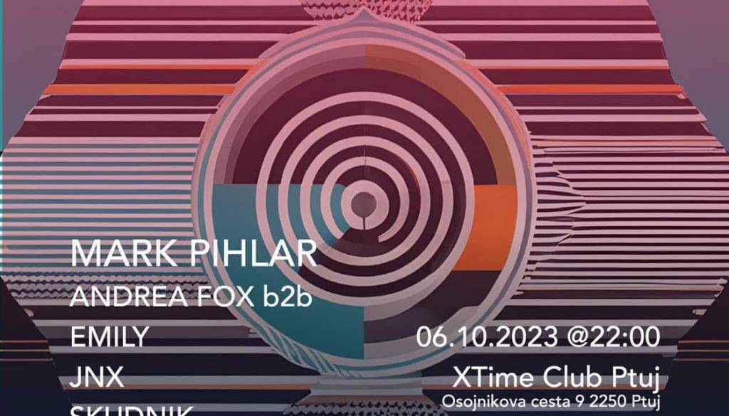 Xtime PtujPo kratkem poletnem premoru, se ekipa vrača v podzemlje Ptuja, kjer tokrat gostimo mladena nadarjenega techno Dj-a in producenta iz Ljubljane -> MARK PIHLAR premierno v najstarejšem mestu! S svojo energijo bosta nalezli z back2back doživetjem tudi že dobro uigrani tech house dvojec ANDREA FOX in EMILY, ki nas nikoli ne pustita ravnodušne, lokalec JNX in talentirani tech house navdušenec iz Maribora SKUDNIK.