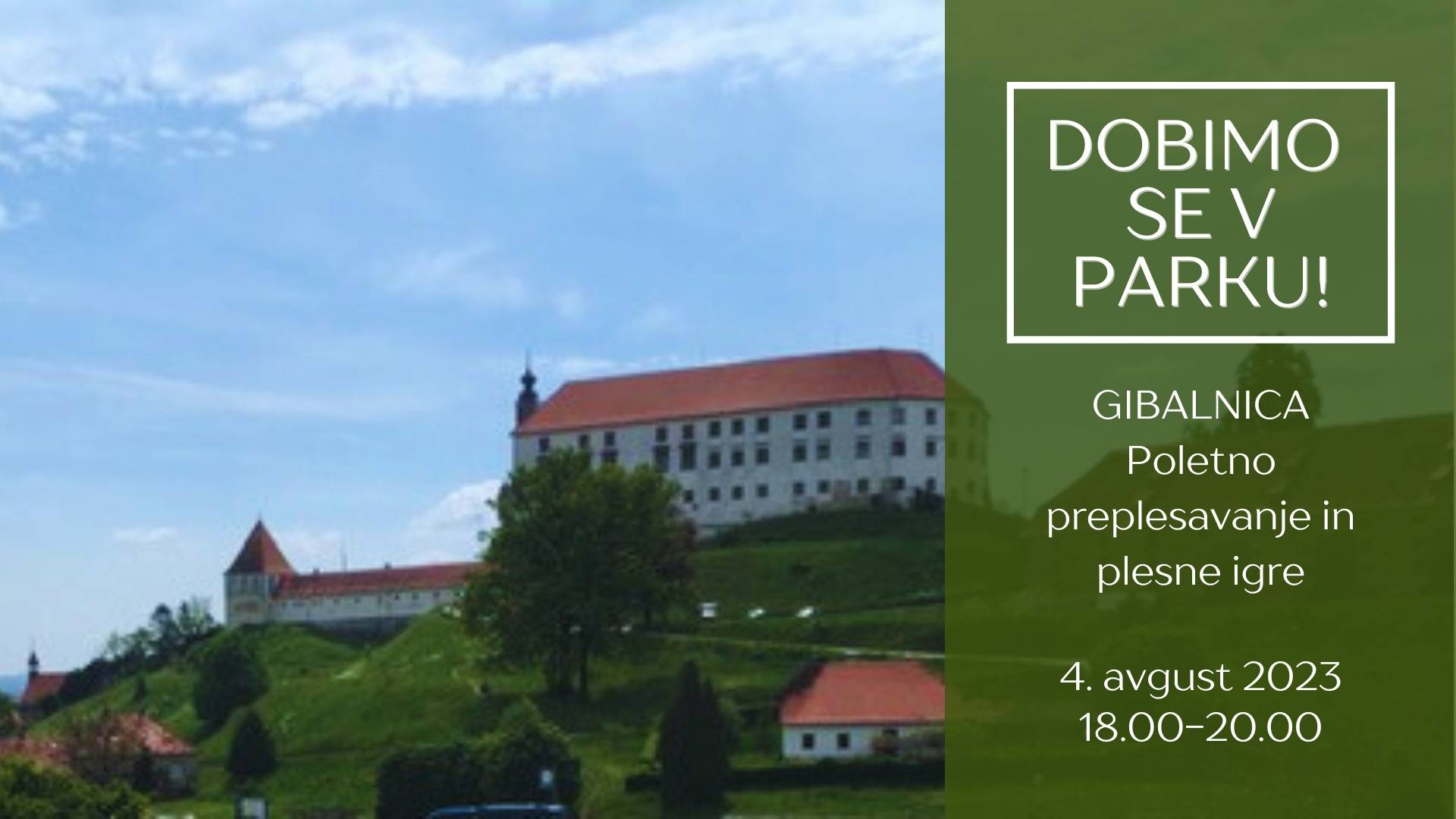 Ptujski Grad - na platoju severnega dela grajskega gričaPoletno vzdušje je nalašč za sproščeno preplesavanje ob dobrih ritmih. Druženje bo sestavljeno iz zanimivih in nadvse zabavnih plesno-gibalnih iger, pri katerih si težavnost določate sami. Srečanje je primerno tako za mlade kot starejše, plesalce ali ne-plesalce. Za lažje gibanje priporočamo udobna oblačila in za žejo kakšno flašo z vodo, sicer pa bo za prigrizek poskrbljeno.
