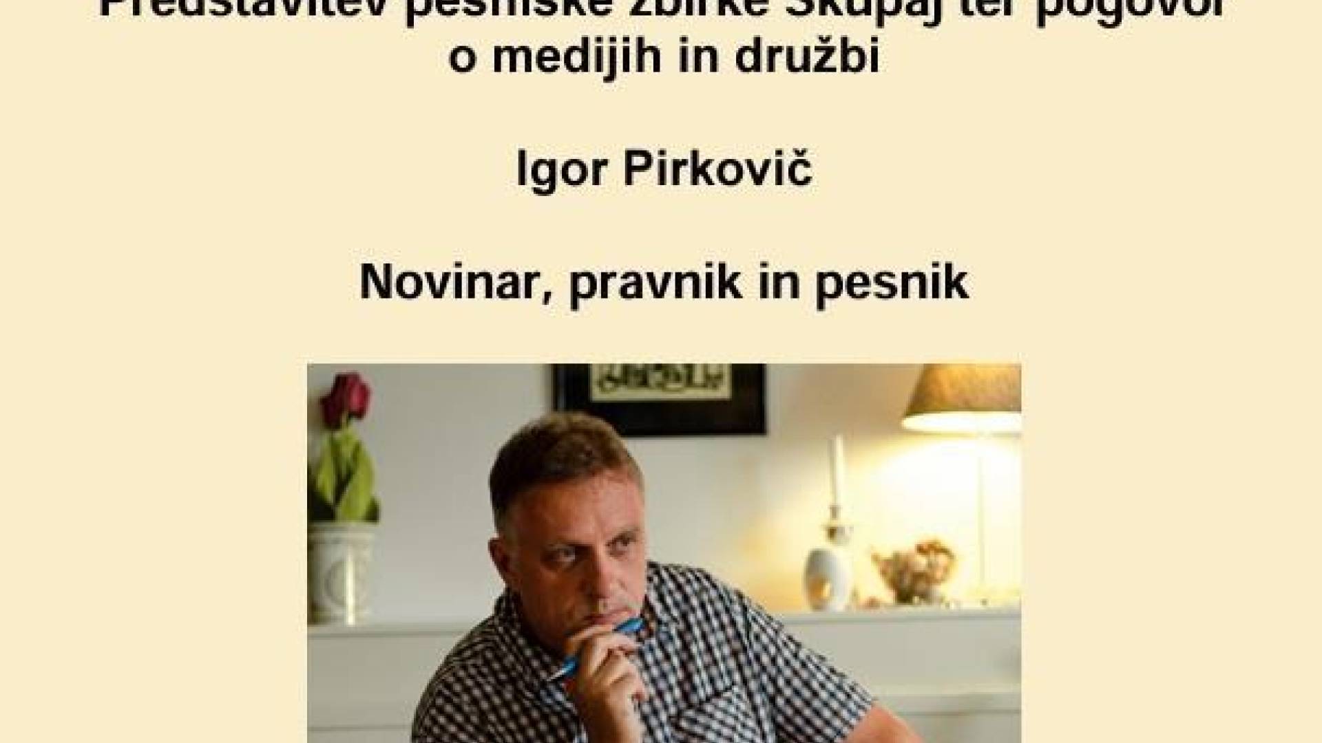 Minoritski samostan PtujDruštvo izobražencev Viktorina Ptujskega vabi na domovinski Viktorinov večer, na katerem bo predstavljena pesniška zbirka z naslovom Skupaj, sledil pa bo pogovor z novinarjem, pravnikom in pesnikom Igorjem Pirkovičemo o medijih in družbi.