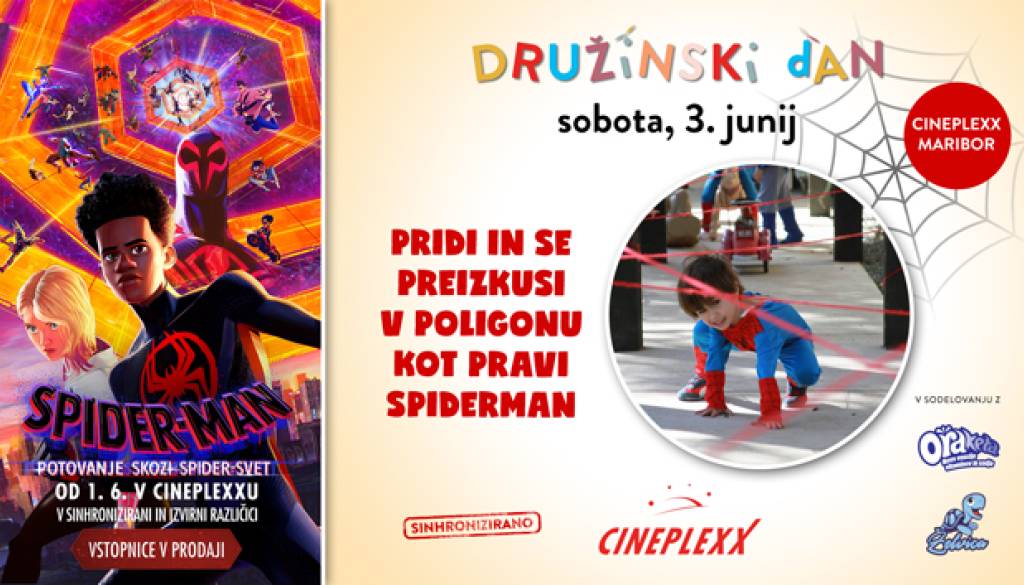 Cineplexx MariborPridružite se nam na DRUŽINSKEM DNEVU s filmom SPIDER-MAN: POTOVANJE SKOZI SPIDER-SVET, v soboto, 3. junija.
