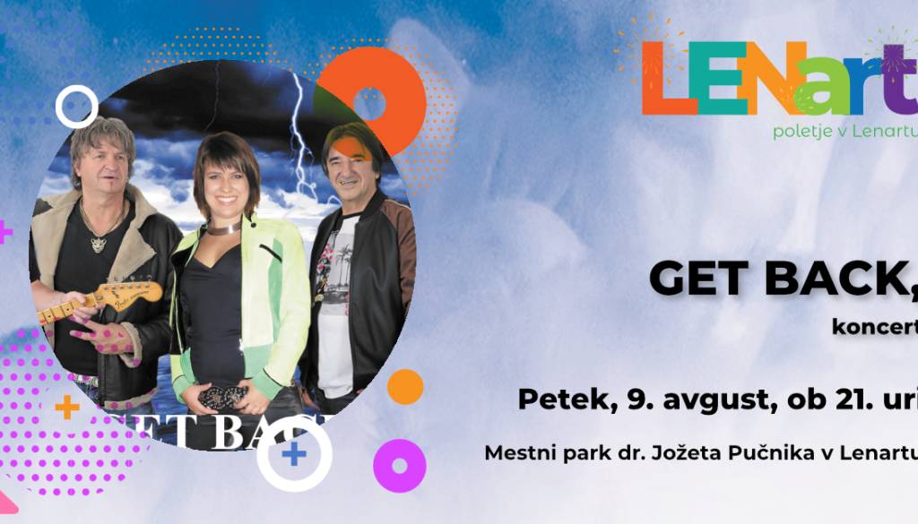 Mariborsko skupino Get Back sestavljajo prekaljeni glasbeniki srednje generacije, ki so prepotovali dobršen del Evrope in delili odre z največjimi legendami kot so Nazareth, Slade, Sweet, Uriah Heep, Smokie….Pred kratkim so izdali album To smo mi, s katerega skladbe se vrtijo na različnih radijskih postajah. Istočasno so izdali tudi album v angleščini z naslovom Roll Back Home, s katerega se skladbe nahajajo na številnih top lestvicah širom sveta in to v družbi Quin, ZZ Top, Status Quo, Metalica… Na koncertu bo skupina predstavila skladbe z albuma To smo mi, za vse ljubitelje svetovne pop/rock glasbe pa še največje hite iz 70-ih, 80-ih in 90- ih let.