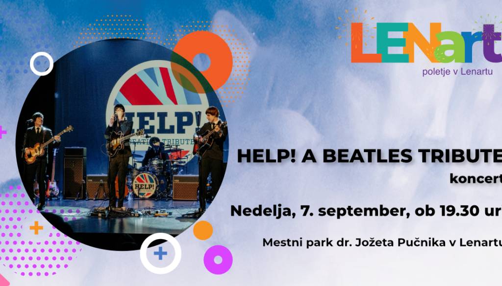 MESTNI PARK DR. JOŽETA PUČNIKA LENARTHELP! A Beatles Tribute skupina, ki svojim energičnim nastopom ter veliko preciznostjo izvaja glasbo iz vseh obdobij glasbenega repertoarja legendarnih The Beatles. HELP! ima za sabo več kot 600 koncertov s festivalov, kulturnih ter športnih dvoran, večjih klubov, ki so se zgodili v 20 državah (Nemčija, Švica, Avstrija, Anglija, Finska, Švedska, Norveška, Grčija, Belgija, Estonija in Bahrain).