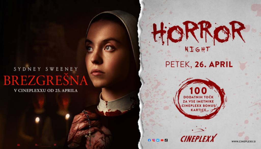 Cineplexx MariborPridruži se nam na Horror nightu s filmom BREZGREŠNA, ki bo v petek, 26. aprila 2024! Imetnike naše CBC kartice bomo nagradili s 100 dodatnimi točkami!