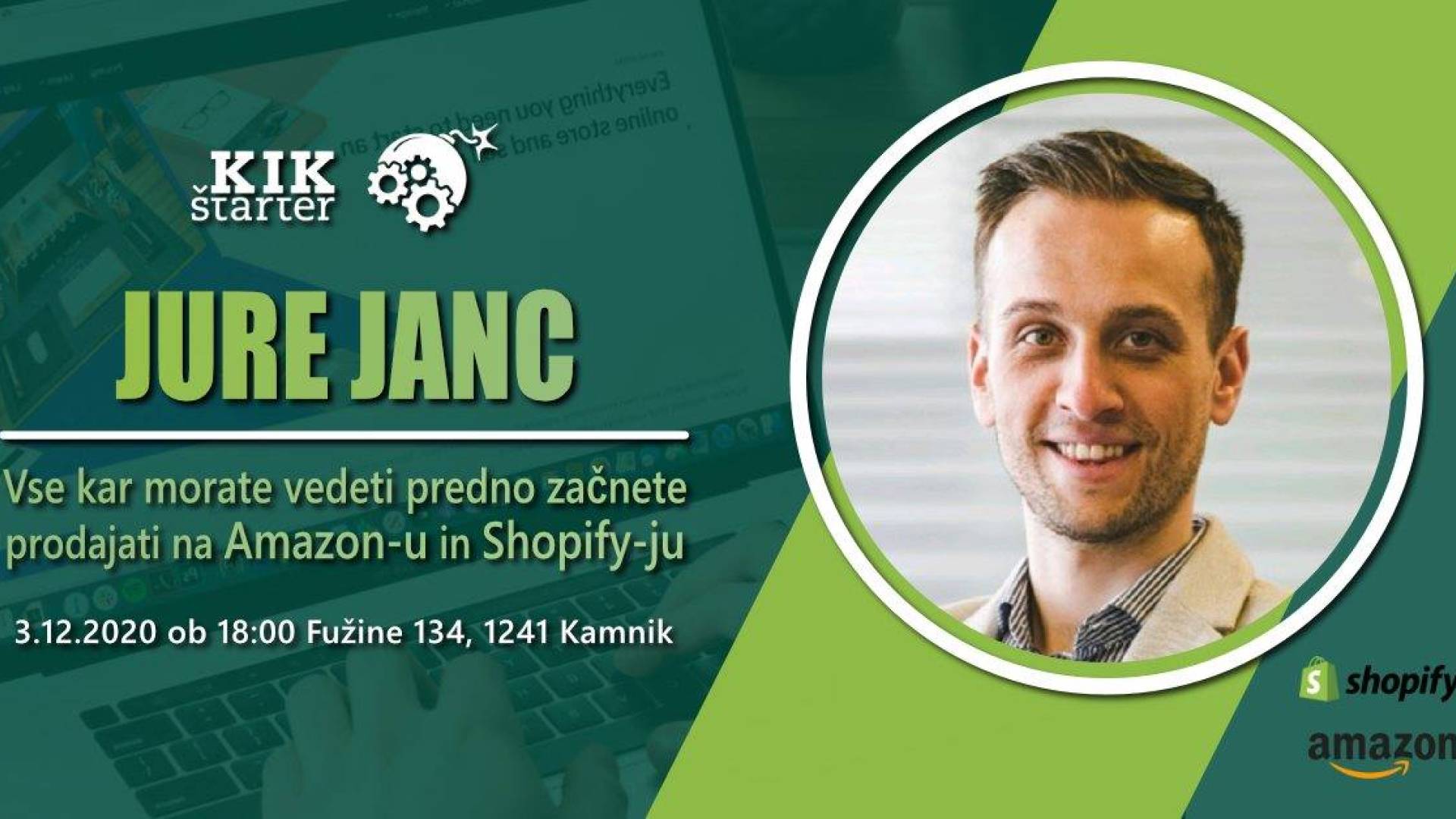 Spletni dogodekV četrtek, 3. decembra, bo v KIKštarterju potekal dogodek na temo prodaje prek Amazona in Shopifyja. Tokratni gost bo Jure Janc, ki ima številne izkušnje in znanja iz tovrstne prodaje🛒.