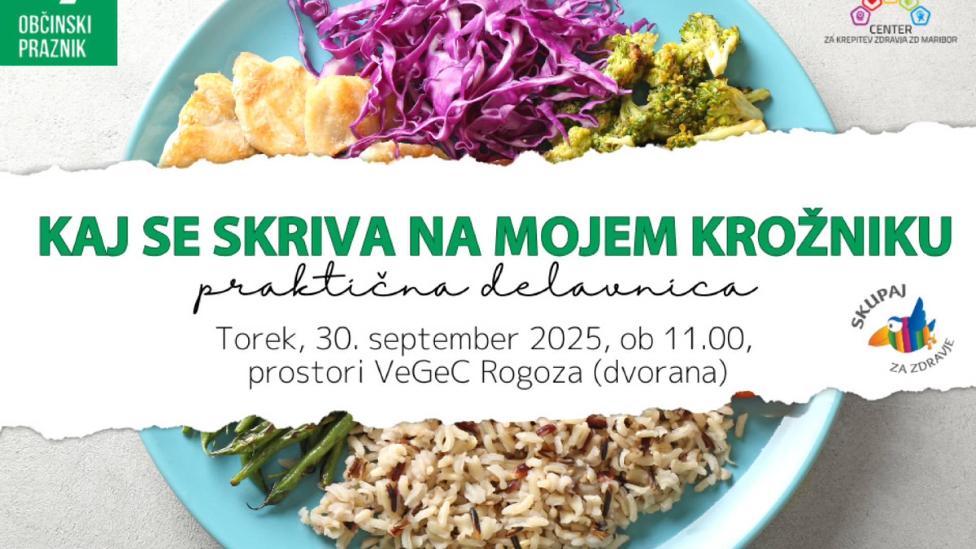 Na praktični delavnici "Kaj se skriva na mojem krožniku", ki bo potekala v torek, 30. 9. ob 11. uri v prostorih VeGeC Rogoza, bomo spoznali uporabne nasvete o živilih iz našega domačega vrta in shrambe ter o sestavljanju preprostih in zdravih obrokov.