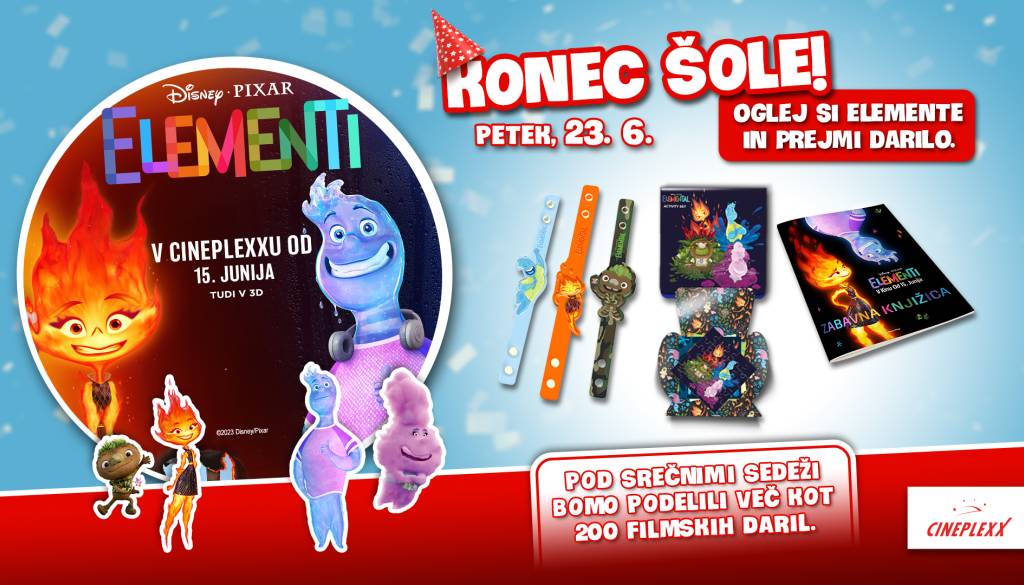 V petek, 23.6. se bo v vseh kinih Cineplexx, na vsaki projekciji risanke ELEMENTI, pod srečnimi sedeži skrivalo nekaj filmskih daril.