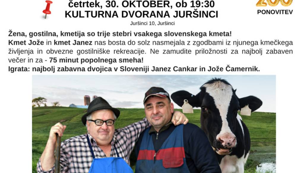 Kulturna dvorana JuršinciKmet Jože in kmet Janez – mojstra smeha na domačem odru