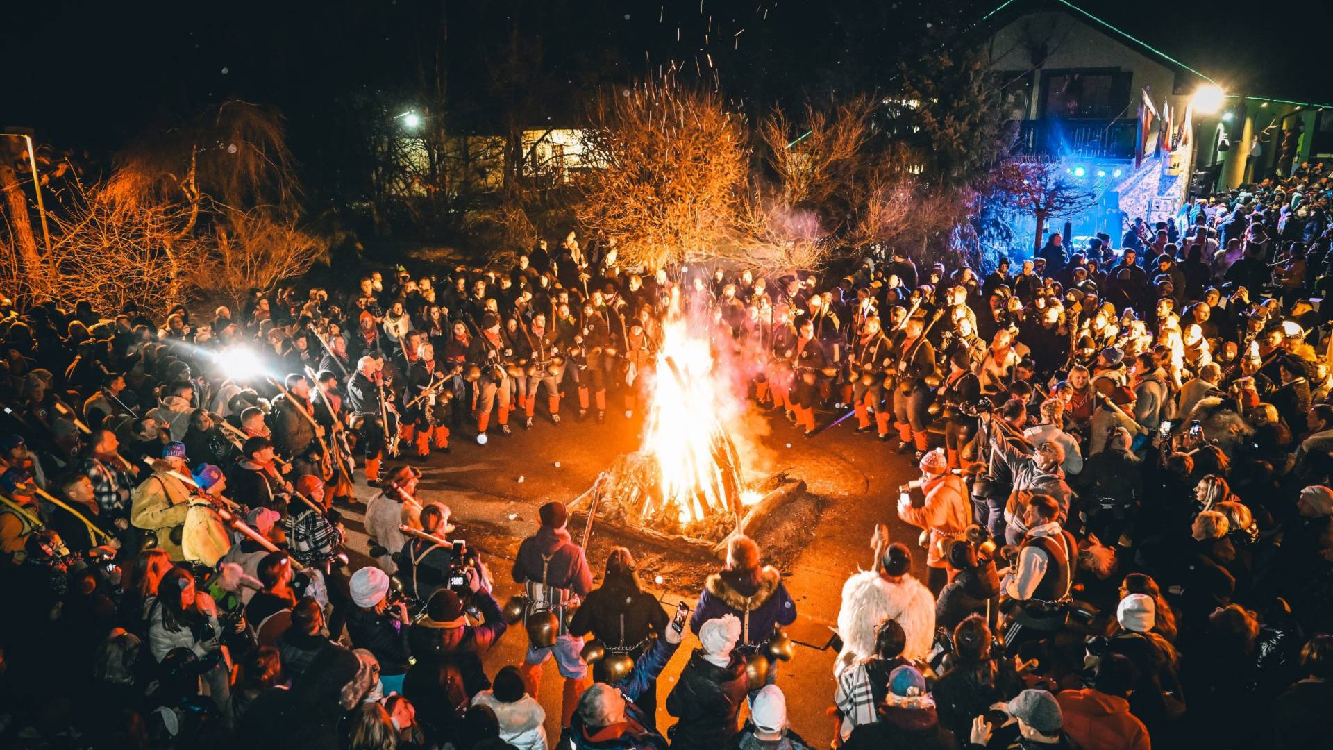 Domačija Zvonka KrižajaZačetek pustnega časa naznanja še posebno mističen dogodek. Ob polnoči in ob soju ognja si kurenti prvič nadenejo zvonce ter z glasnim zvonjenjem pričnejo odganjati zimo in zlo.