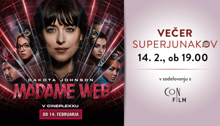 Predpremierno, v sredo, 14. februarja, ob 19:00, ne zamudi VEČERA SUPERJUNAKOV s filmom MADAME WEB. Vstopnice že v prodaji! Madame Web odstopa od običajnih ...