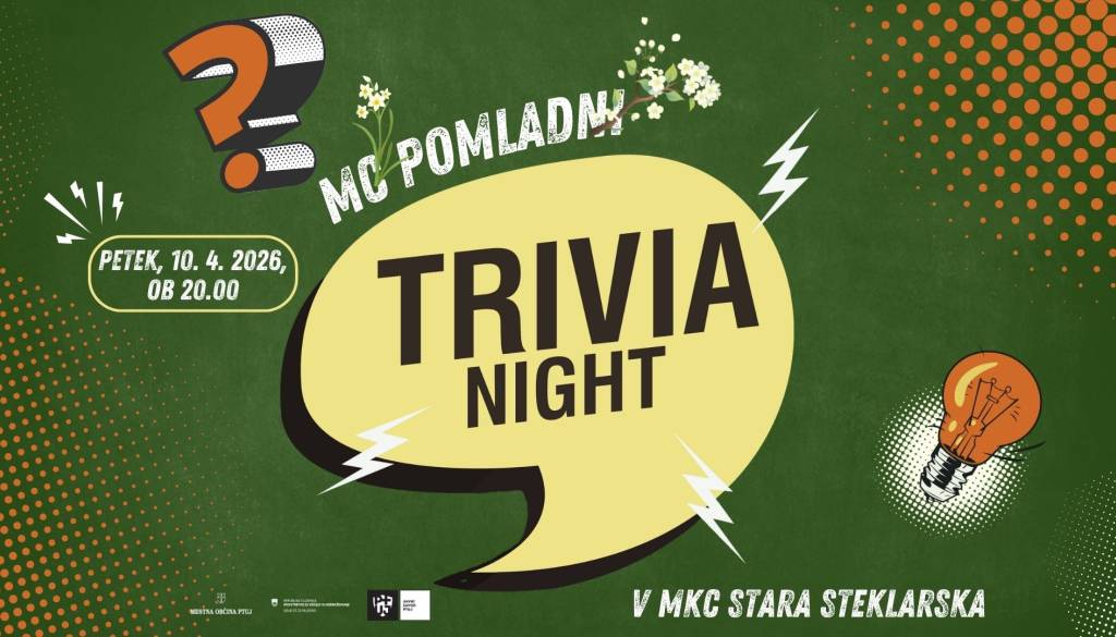 MKC Stara steklarska PtujPomlad prinaša nove izzive, in kaj je boljša priložnost za preizkus tvojega znanja kot večer poln zabave, smeha in tekmovalnega duha? Če želiš preveriti svoje znanje, se ob tem družiti s prijatelji in si priboriti privlačne nagrade, potem ne smeš zamuditi pomladno obarvanega Trivia Nighta v MKC Stara steklarska!