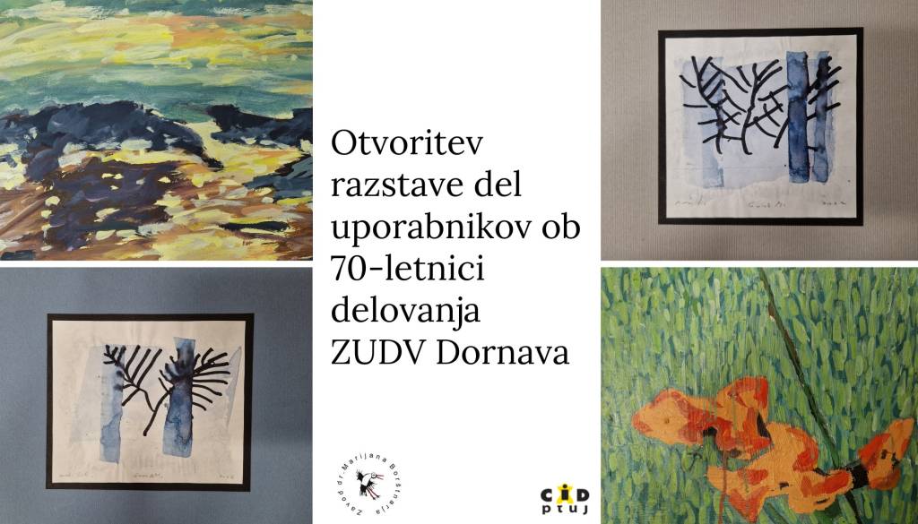 CID PtujZavod za usposabljanje, delo in varstvo dr. Marijana Borštnarja Dornava letos praznuje 70 let. Ob tem častitljivem jubileju so uporabniki Varstveno-delovnega centra Dornava, ki sodelujejo v likovni skupini pod mentorstvom Gregorja Samasturja, pripravili posebno razstavo svojih likovnih del.