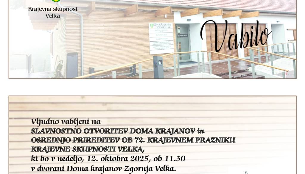 V dvorani Doma krajanov Zgornja VelkaVabljeni.