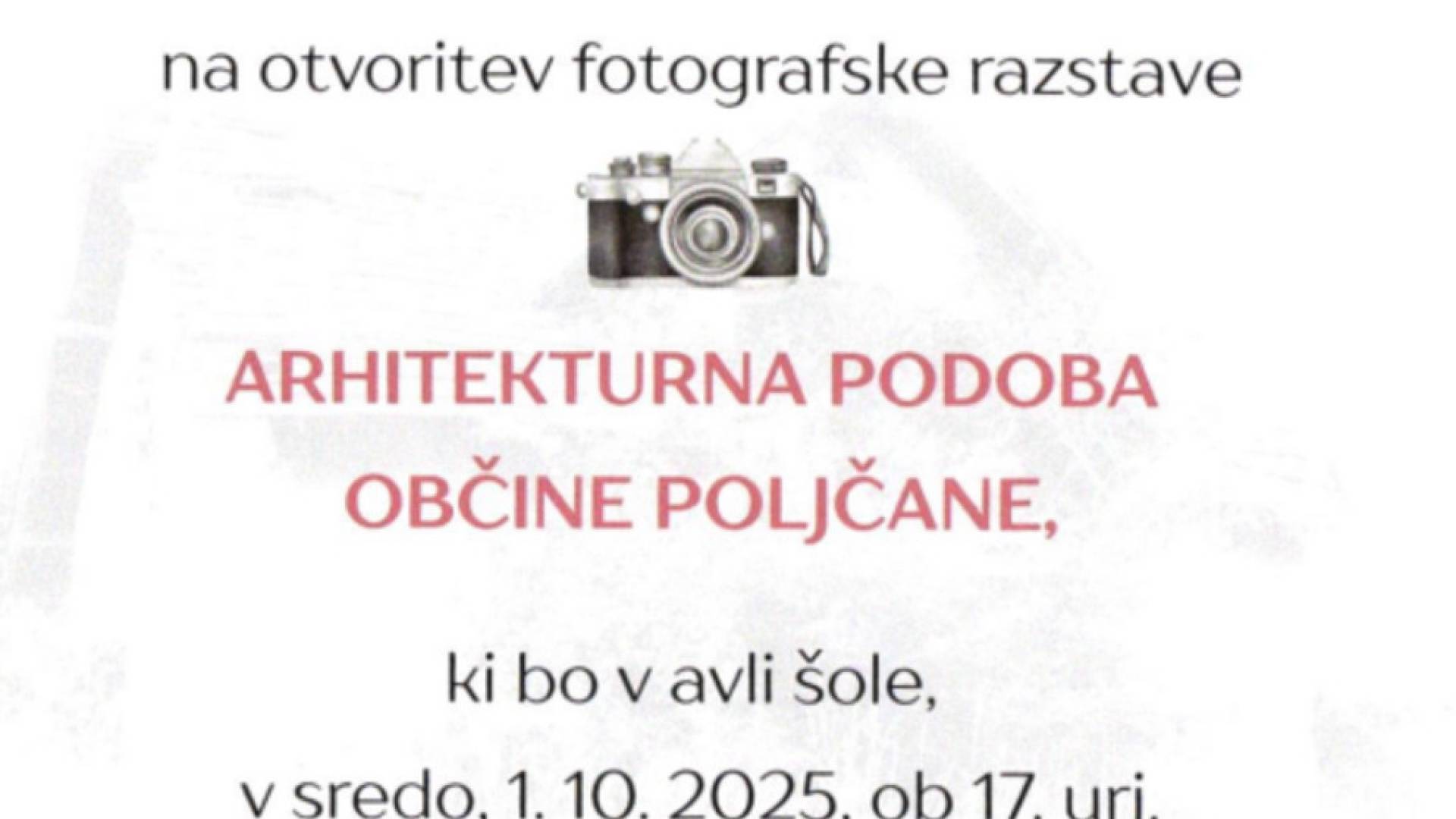 Osnovna šola Kajetana Koviča PoljčaneV okviru projekta Dnevi evropske kulturne dediščine, v katerem sodeluje tudi naša šola, bomo v sredo, 1. 10. 2025, ob 17. uri odprli razstavo fotografij naših učencev in staršev na temo Arhitekturna podoba občine Poljčane.