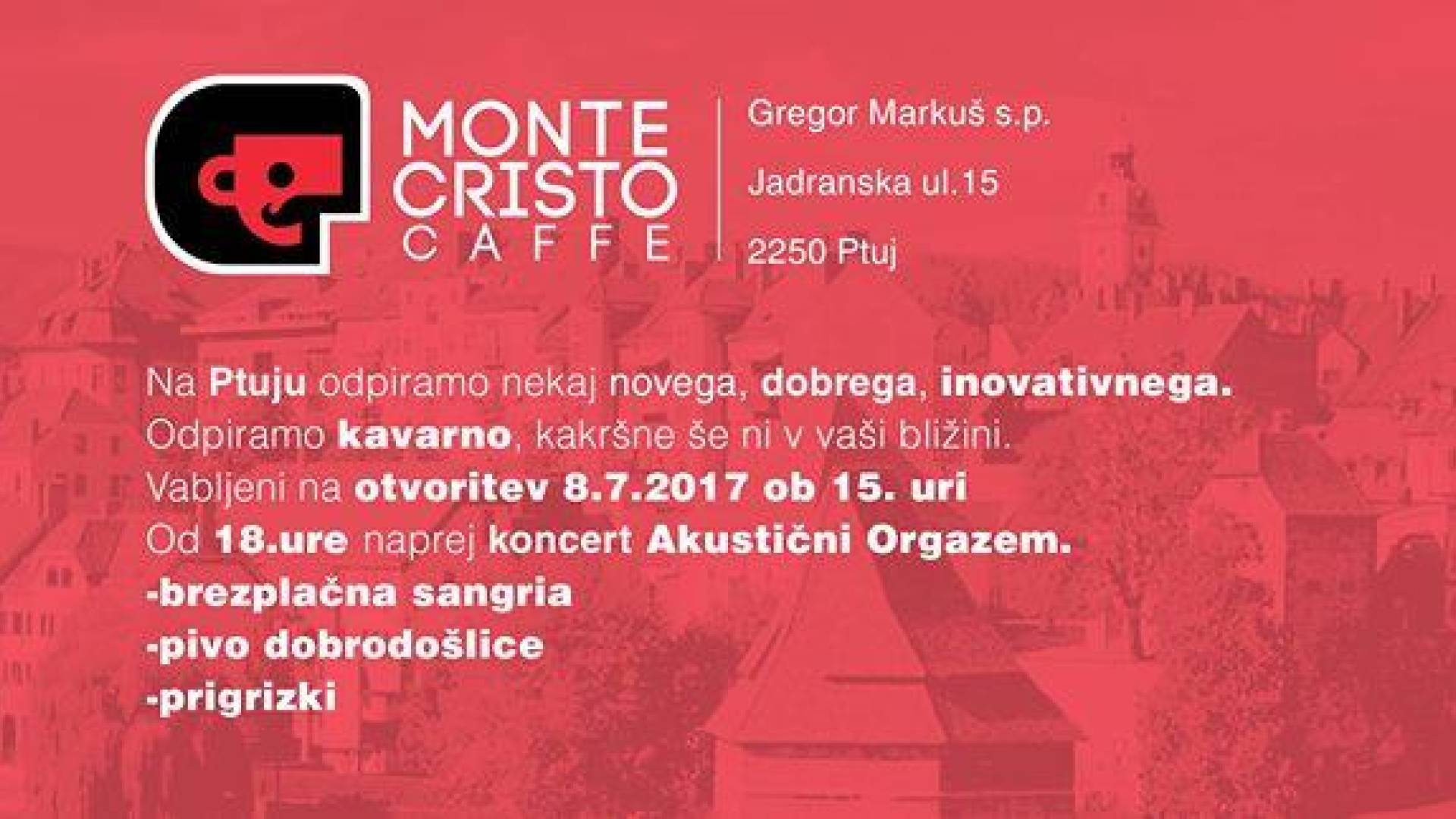 Monte Cristo Caffe Jadranska ulica 15 PtujNa Ptuju odpiramo nekaj novega, dobrega in inovativnega. Odpiramo kavarno, kakršne še ni v bližini.