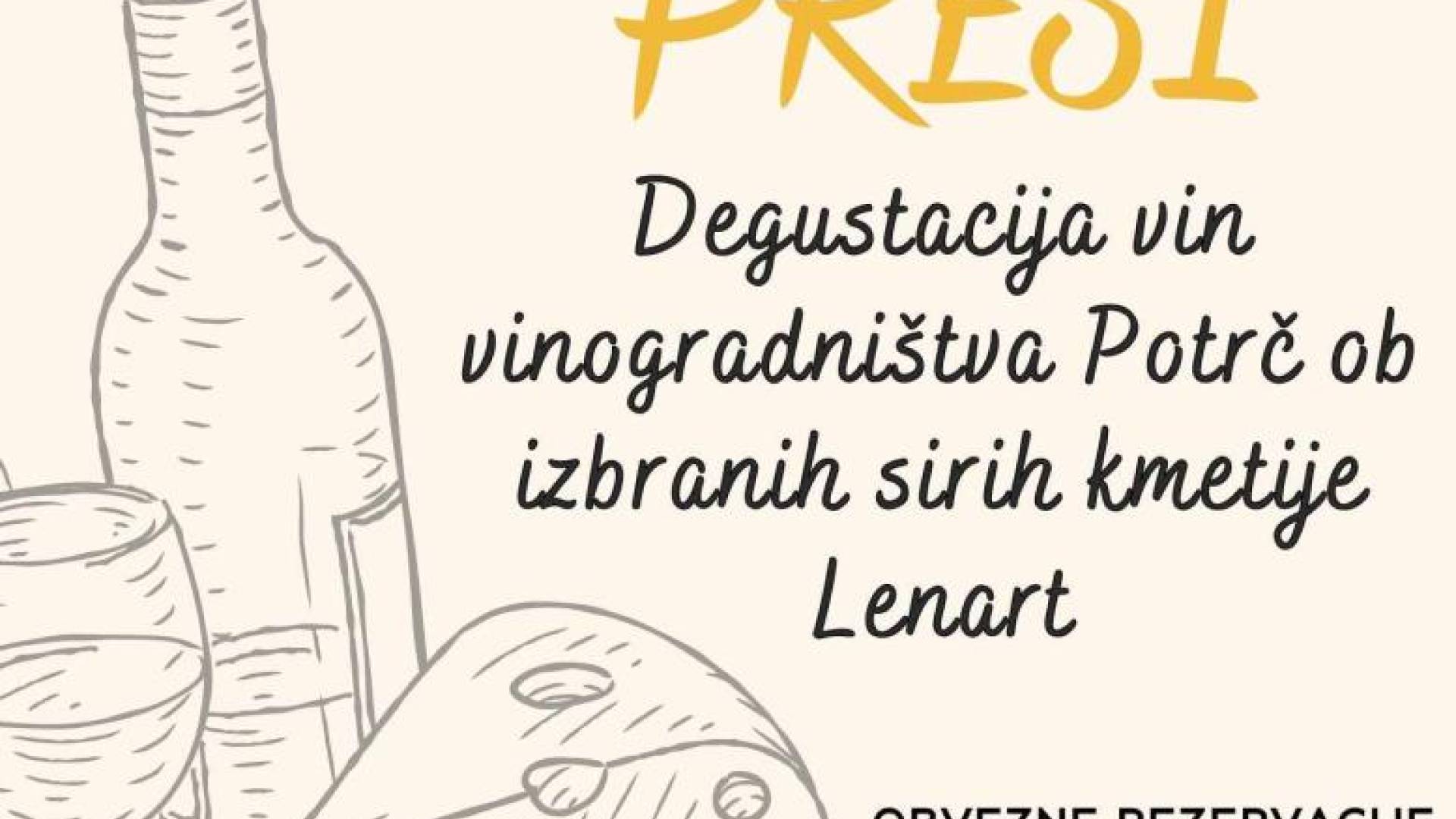 Tokrat degustacija vin vinogradništva Potrč ob izbranih sirih kmetije Lenart .
