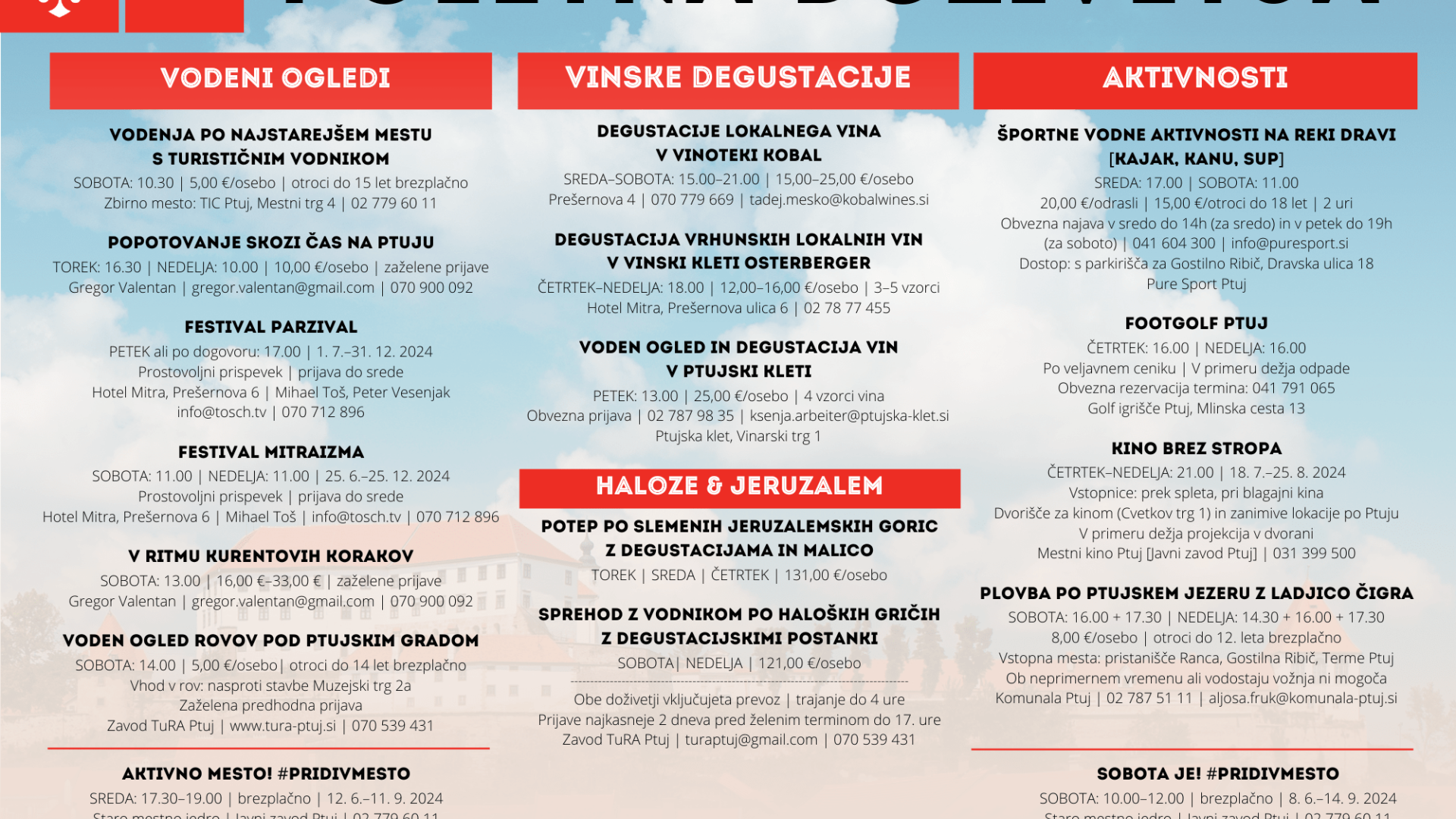 aktivnosti, ki jih ptujski ponudniki pripravljajo vsak teden ob istem času