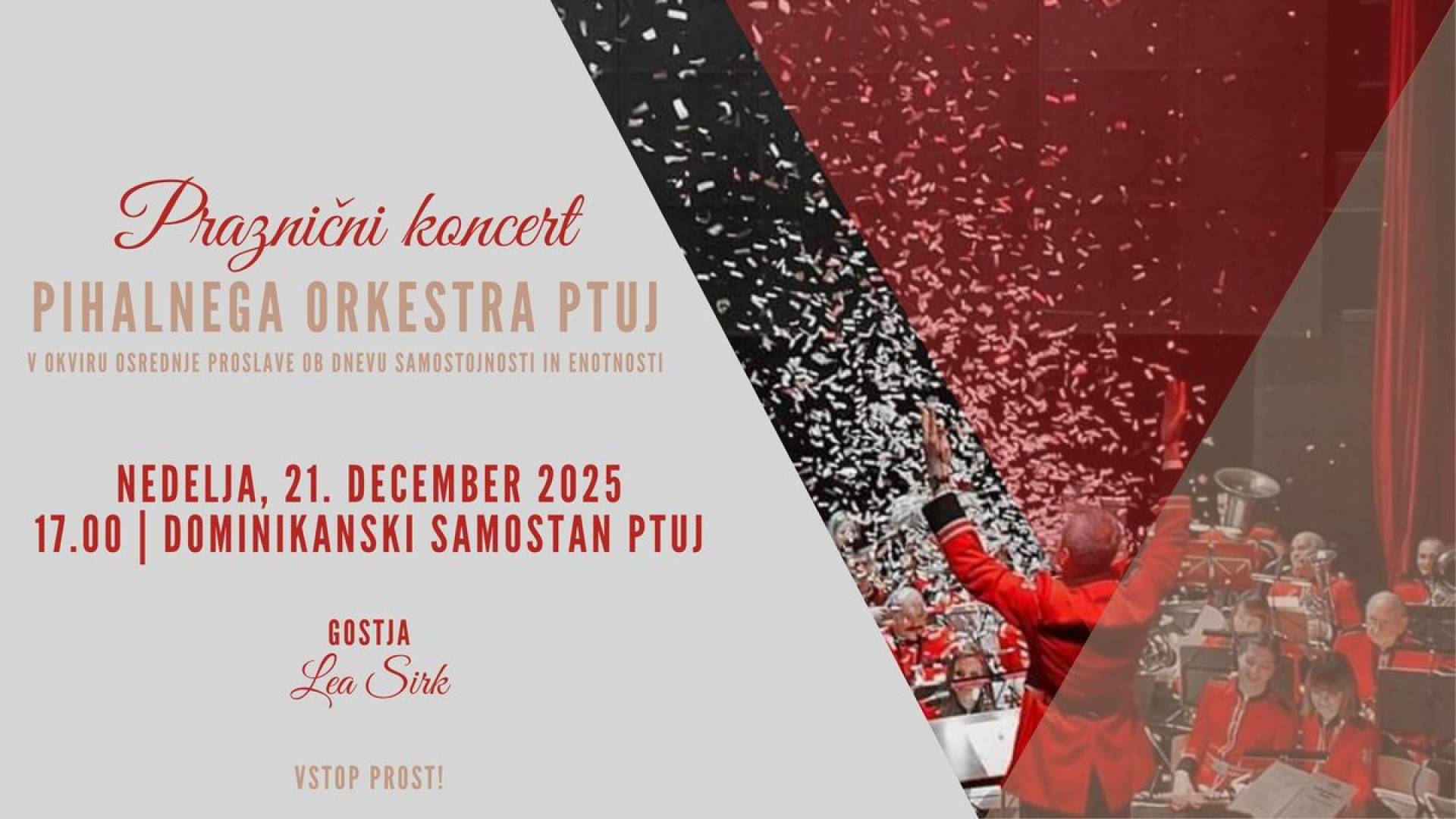 Pihalni orkester Ptuj pod vodstvom dirigenta Fredija Simoniča bo poskrbel za nepozaben glasbeni večer, ki ga bo s svojim nastopom obogatila posebna gostja Lea Sirk.