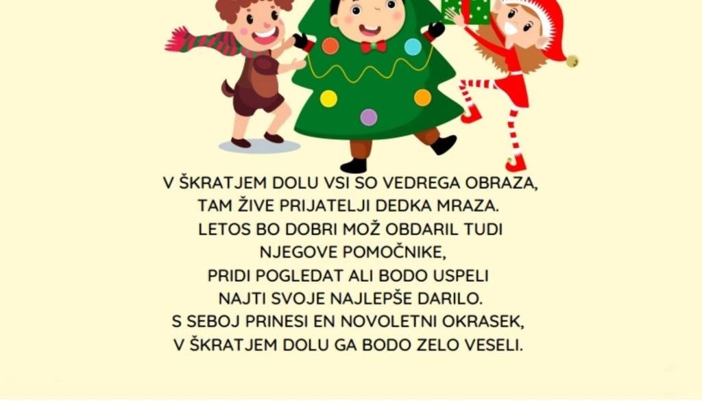 Dom kulture Gornja RadgonaV Škratjem dolu vsi so vedrega obraza, tam žive prijatelji Dedka Mraza. Letos bo dobri mož obdaril tudi njegove pomočnike, pridi pogledat ali bodo uspeli najti svoje najlepše darilo. S seboj prinesi en novoletni okrasek, v Škratjem dolu ga bodo zelo veseli.