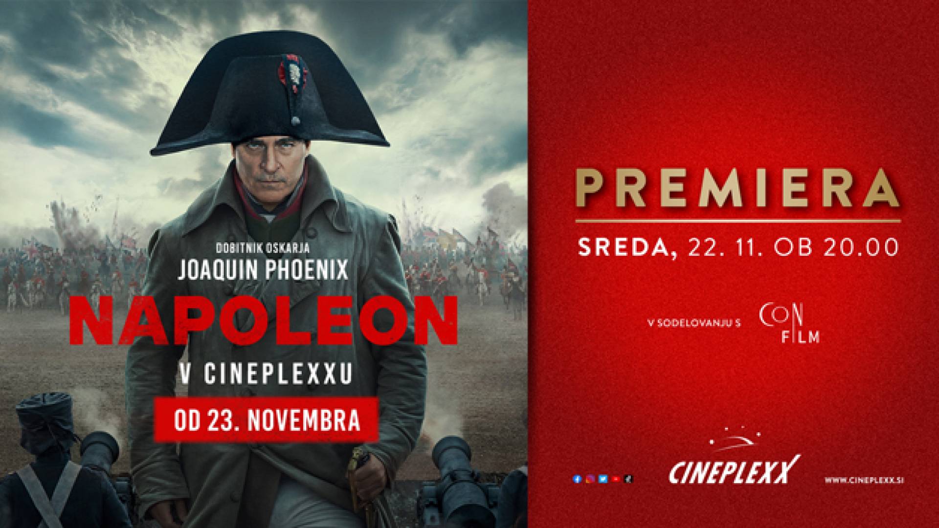 Cineplexx MariborV vseh naših kinih Cineplexx ne zamudi premiere filma NAPOLEON, ki bo v sredo, 22. novembra ob 20:00!!