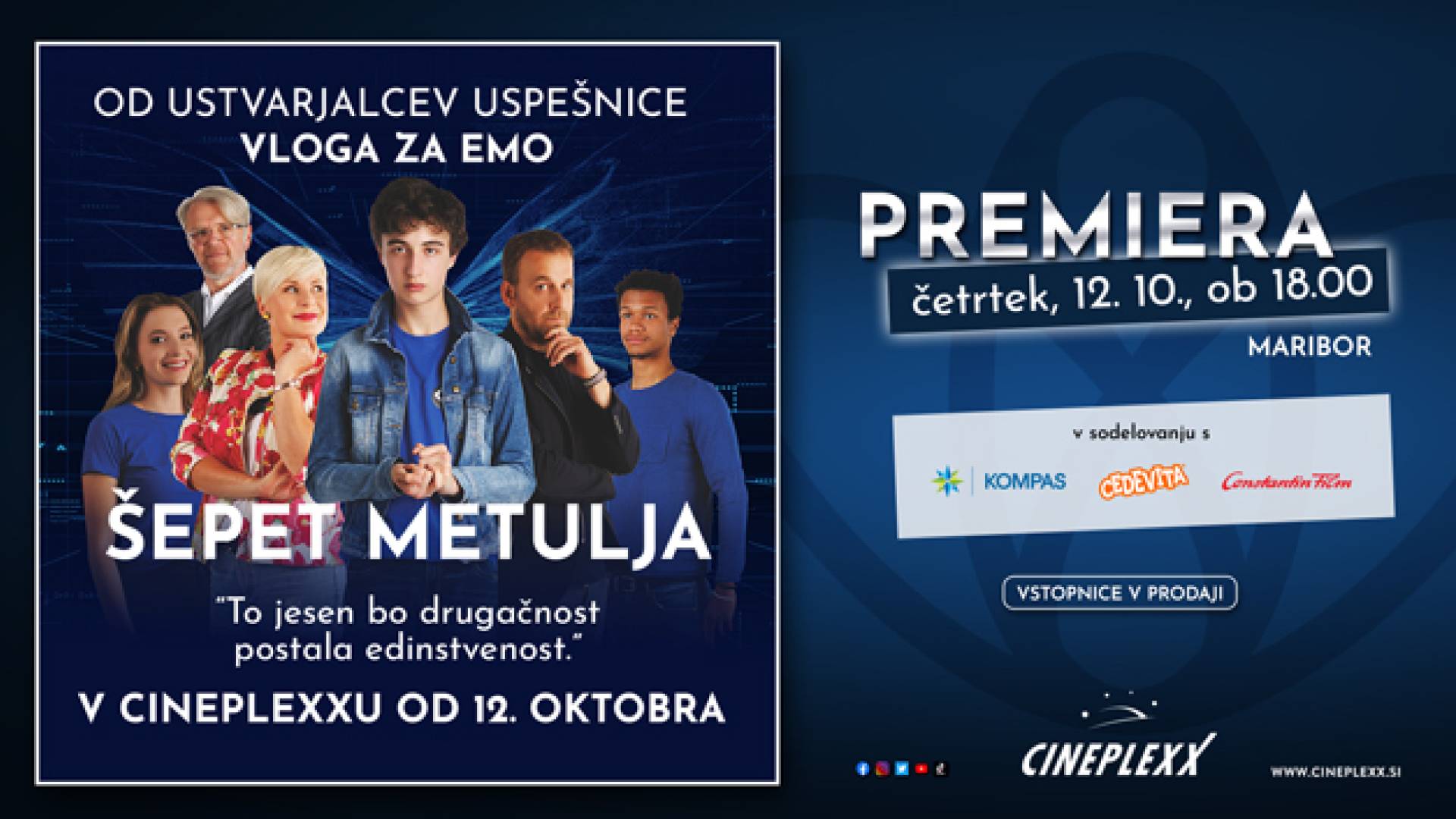 Cineplexx MariborPridruži se nam na PREMIERI filma ŠEPET METULJA, ki bo v Cineplexxu Maribor, v četrtek, 12. oktobra ob 18:00. Obiskala nas bo tudi ekipa in igralska zasedba!