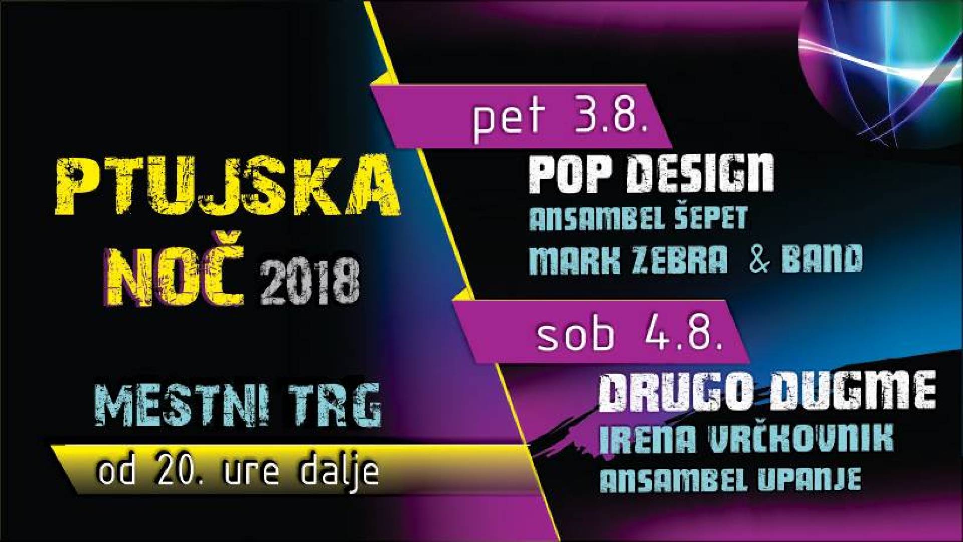 SOBOTA / 4. avgust od 20. ure dalje: