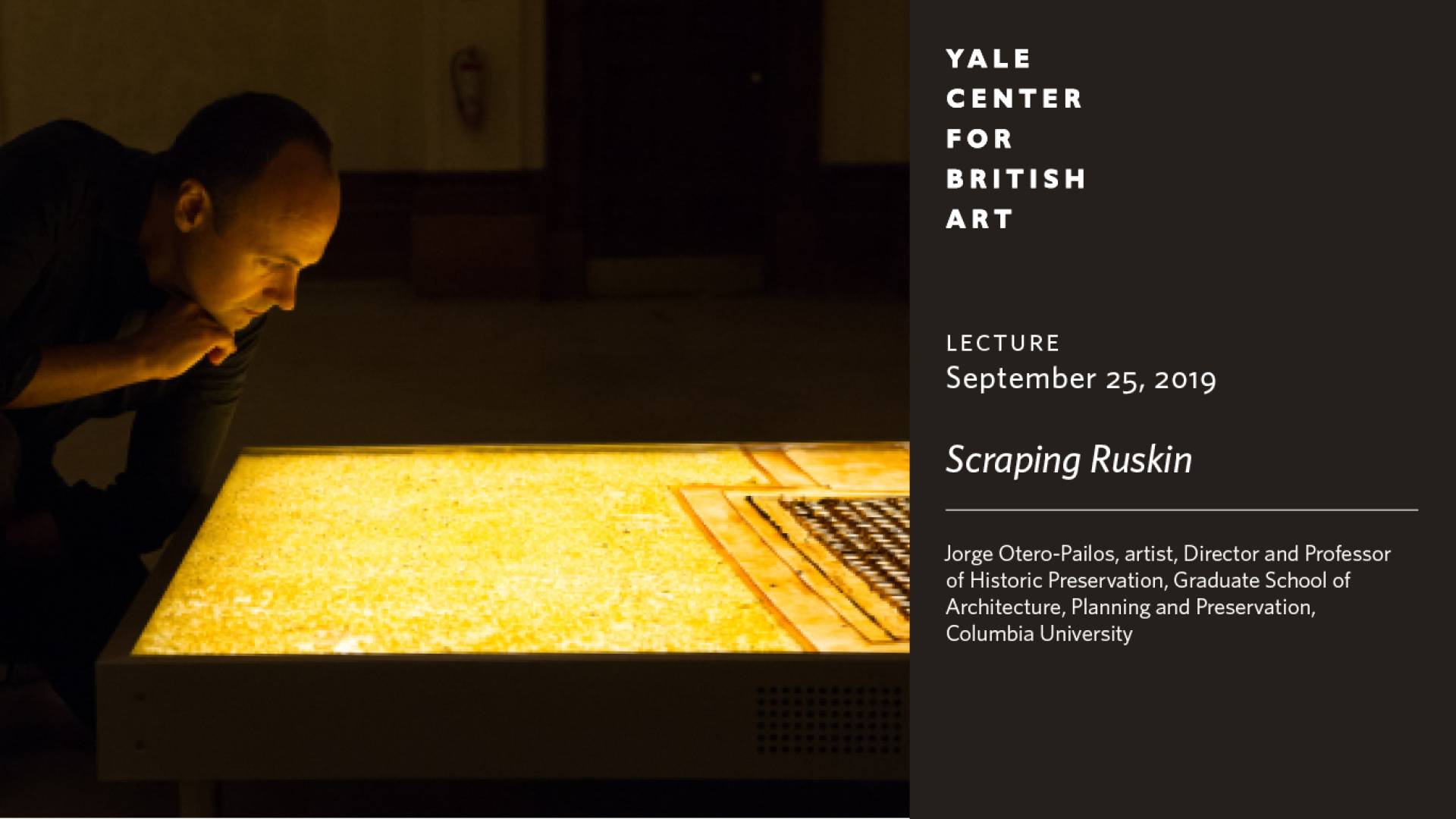 Galerija mesta PtujJorge Otero-Pailos, umetnik, direktor in profesor konzervacije zgodovine na Visoki šoli za arhitekturo Univerze Columbia, je leta 2019 imel predavanje, ki je dopolnilo razstavo Unto This Last: Two Hundred Years of John Ruskin.