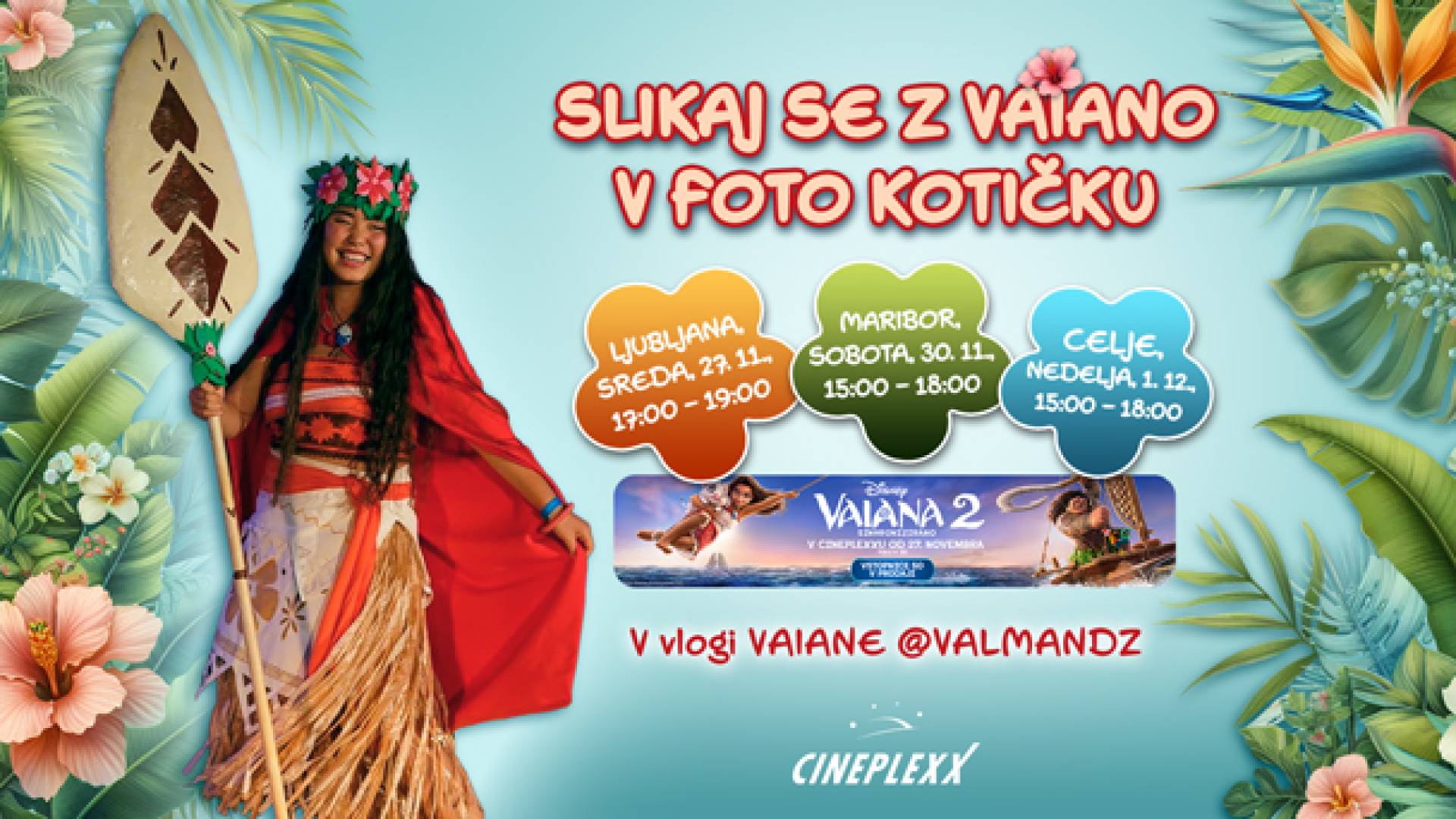 Cineplexx MariborPridi v kino in se slikaj z Vaiano v foto kotičku! V vlogi Vaiane bo @ValMandz.