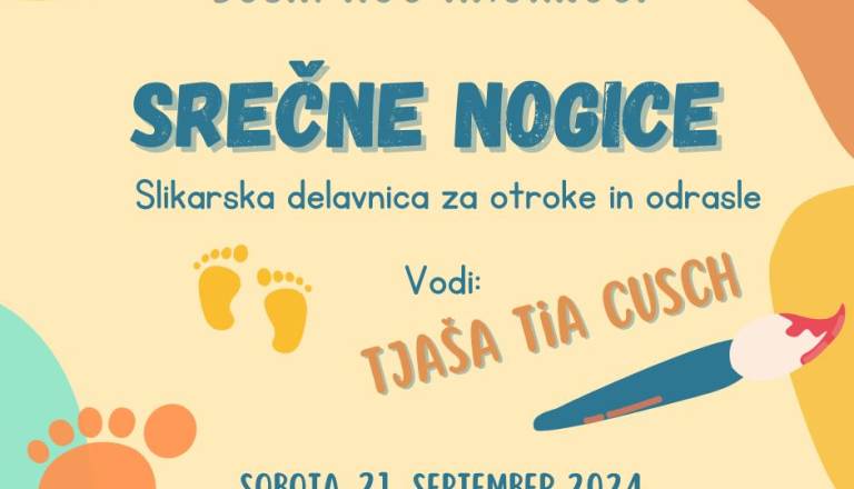 Delavnica pod vodstvom akademske slikarke Tjaše Čuš je namenjena otrokom od 7. do 15. leta starosti. Poiskali bomo pomladni motiv in odtenke ter oblikovno opremili svojo nosilno vrečico.