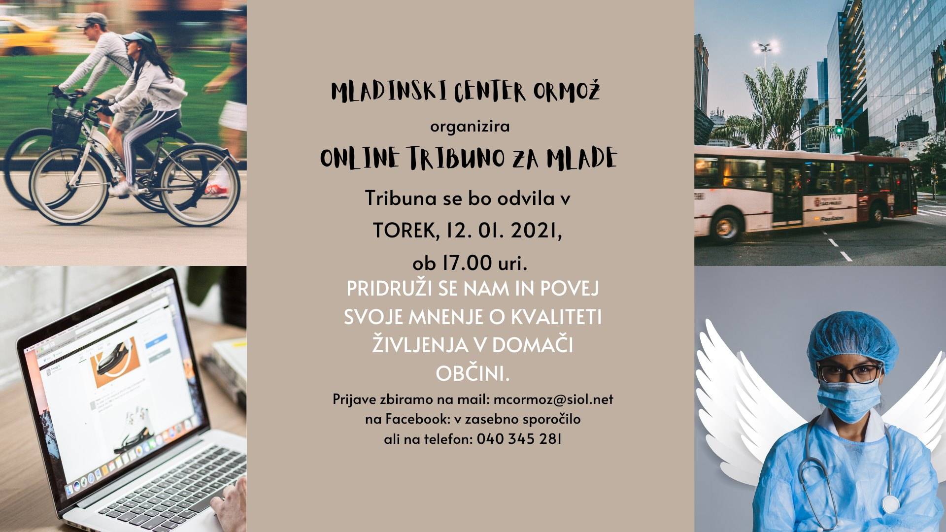 Spletni dogodekV torek, 12. 1. 2021, ob 17. uri, pripravljamo online tribuno za mlade, z namenom spregovoriti o položaju mladih pri nas.