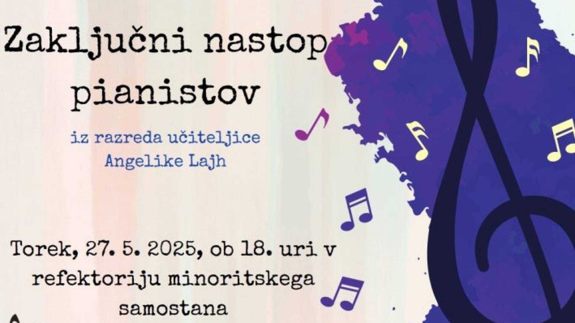Vabilo na zaključni nastop pianistov iz razreda učiteljice Angelike Lajh