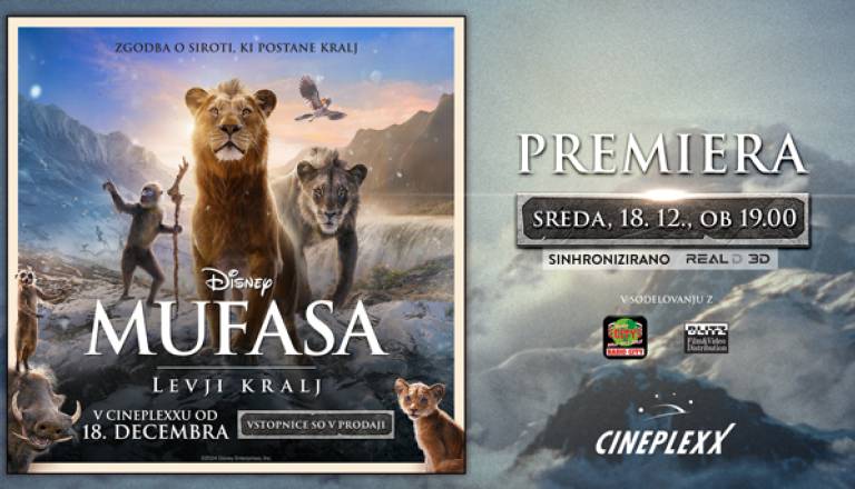 Pridruži se na premieri filma MUFASA: LEVJI KRALJ, ki bo v Cineplexxu Maribor, že v sredo, 18. decembra 2024 ob 19:00! Medijski partner premiere je Radio City. ...