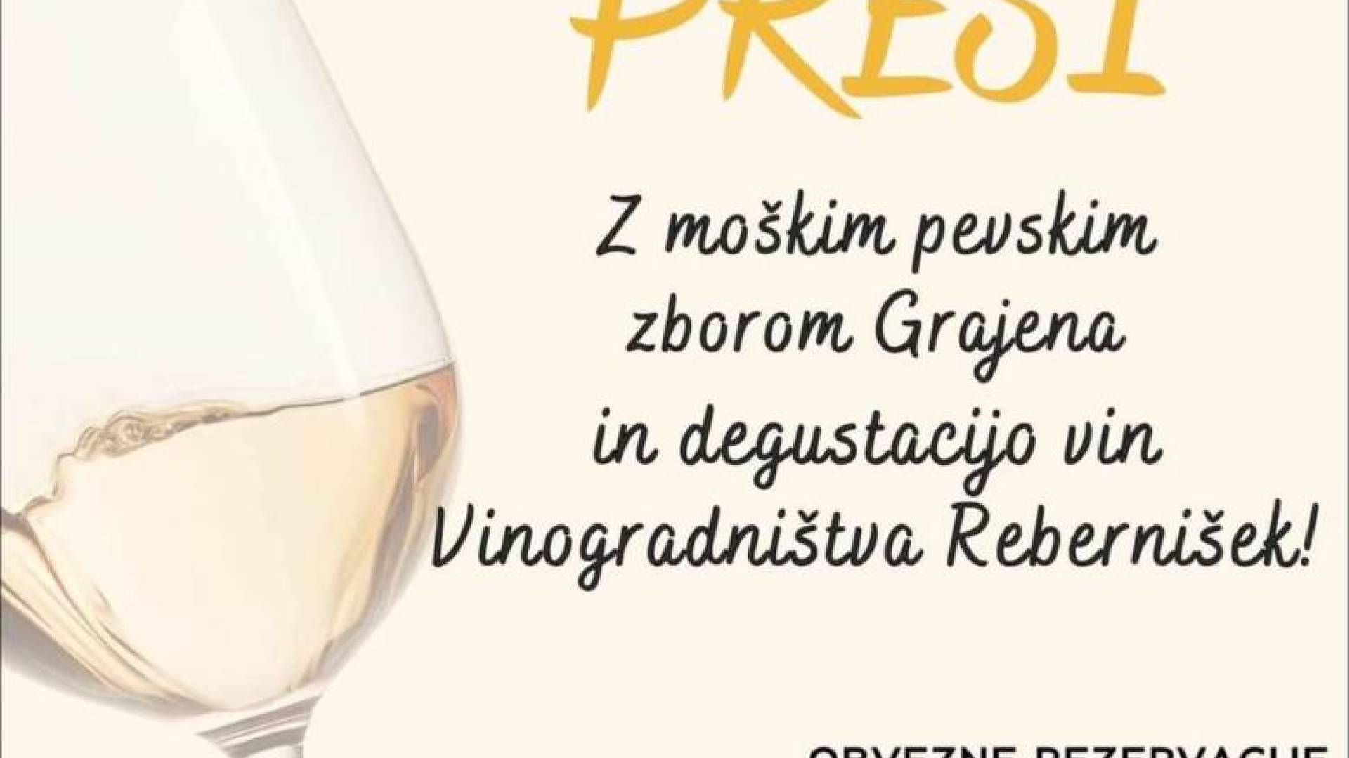 Mestni trg 28Društvo vinogradnikov in sadjarjev Osrednje Slovenske gorice vas v petek, 6. 9. 2024, ob 18. uri vabi na degustacijo vin Vinogradništva Rebernišek ob spremljavi pesmi Moškega pevskega zbora Grajena.