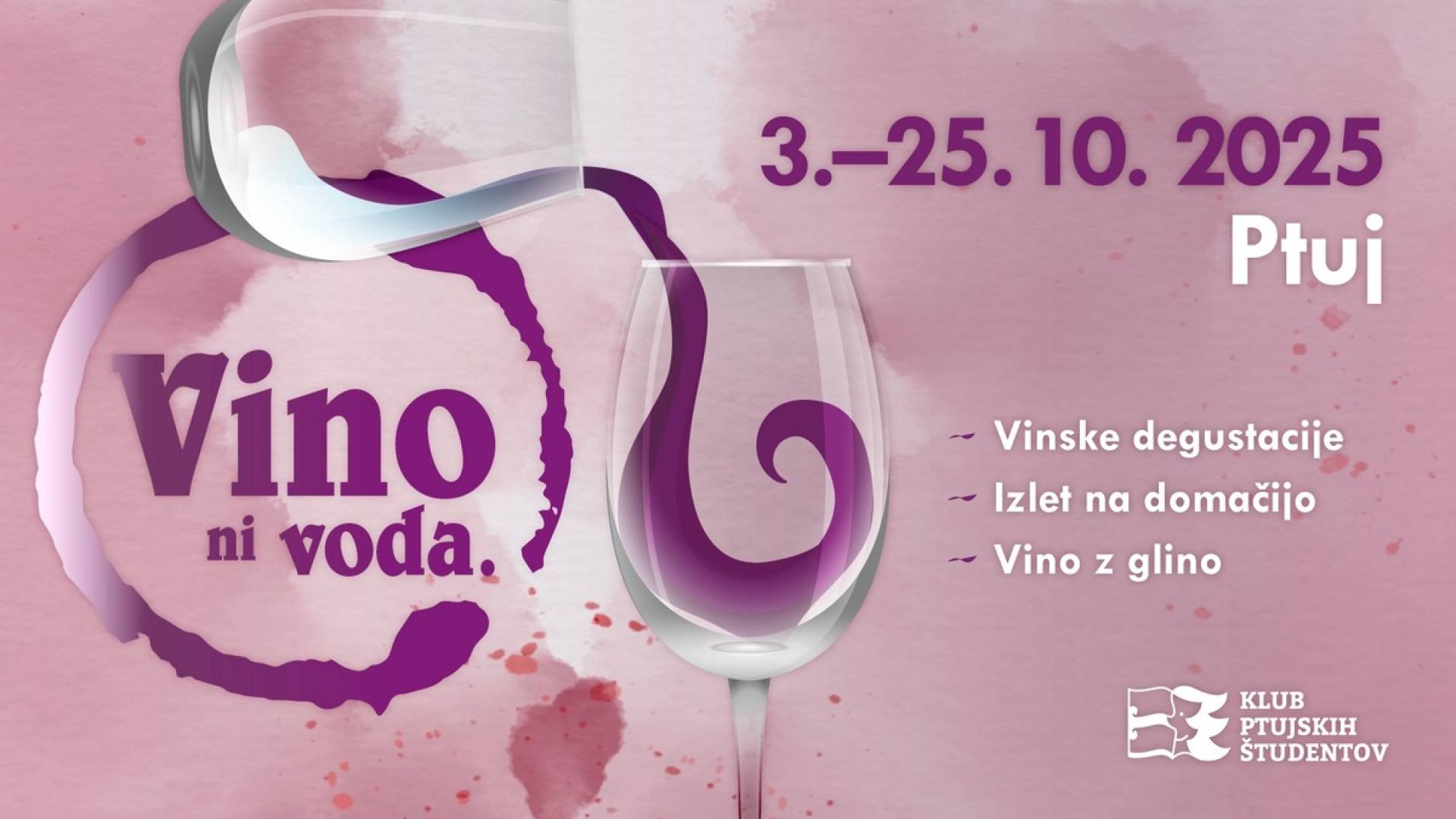 Klub ptujskih študentovFestival odličnega vina, glasbe in druženja se spet vrača na Ptuj, in to že 24. leto zapored! Čakajo nas degustacije vin slovenskih vinarjev kot tudi ustvarjalne delavnice in izlet na domačijo.