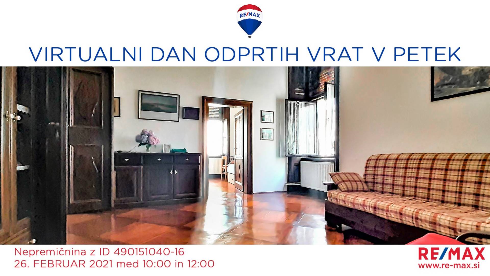 Spletni dogodekVabimo vas na virtualni ogled 3-sobnega meščanskega stanovanja na Ptuju.