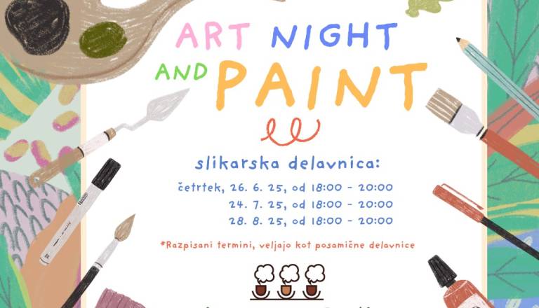 Veseli smo, da se želiš pridružiti naši kreativni delavnici Artnight & Paint, ki bo potekala v prijetnem ambientu Kavarne Bodi na Ptuju. Na voljo so trije ...