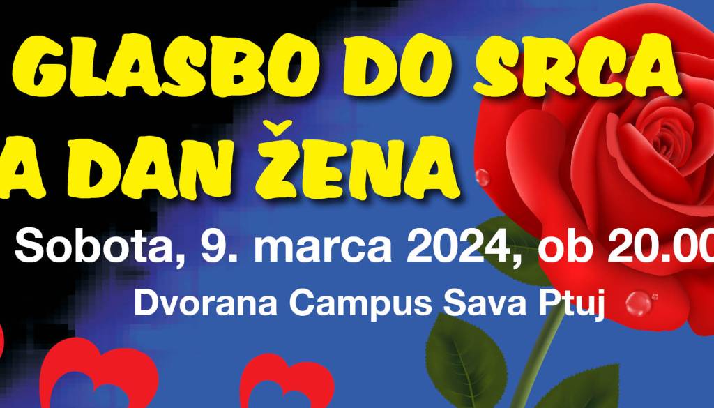 Campus Sava Ptuj - Karnevalska dvoranaKoncertu Z glasbo do srca, za dan žena. Sobota, 9. marca ob 20.00 v dvorani Campus Sava Ptuj.