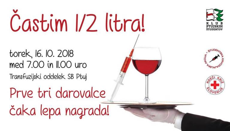 Študenti nadaljujemo z uspešno dobrodelno akcijo darovanja krvi, ki poteka pod sloganom Častim pol litra! in vsako leto privabi več krvodajalcev. Kri bo tokrat ...