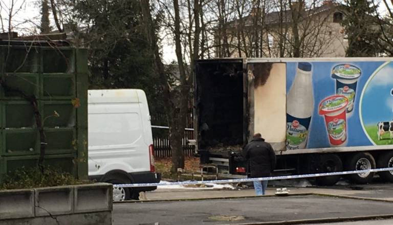 FOTO in VIDEO: Zagorela dva kombija in prikolica, na kraju bombni tehniki