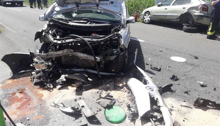 FOTO: Najprej trčil v stoječi avtomobil, nato še čelno v nasproti vozečega