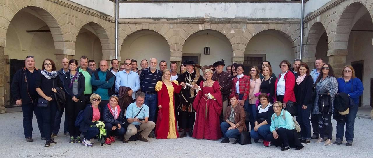 Že ob prihodu na ptujski grad so gostje doživeli 'kraljevi' sprejem. Nagovoril jih je knez Bojan iz Društva Cesarsko kraljevi Ptuj, dobrodošlico pa jim je izrekel tudi mestni glasnik Rado in jih povabil v grajsko klet.