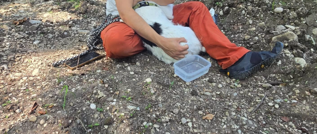 Romarka naj bi pri obvladovanju živali padla in pri tem izpustila povodec psičke Cure, ki je panično pobegnila v obcestni gozd. Druga psička se je po kratkem obhodu okolice k lastnici vrnila sama, Cura pa je izginila – kljub temu da je imela na sebi oprtnik z vrvjo.