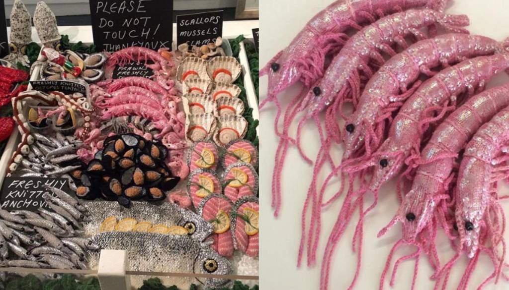 Oblikovalka pletenin Kate Jenkins je iskala nove načine, kako se izraziti skozi barve in tekstil. In tako je izdelala tako domiselne in realistične morske in druge jedi, da bi se lahko opazovalec prav hitro zmedel in zagrizel v kakšno od njih.