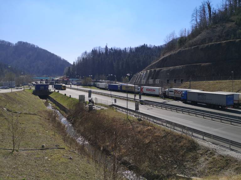 Po podatkih Prometno-informacijskega centra za državne ceste je zastoj tovornih vozil na podravski avtocesti pred mejnim prehodom Gruškovje proti Hrvaški dolg okoli tri kilometre. To je precej manj kot pred dnevi, ko je kolona tovornjakov segala okoli 14 kilometrov daleč, vse do priključka v Dražencih.