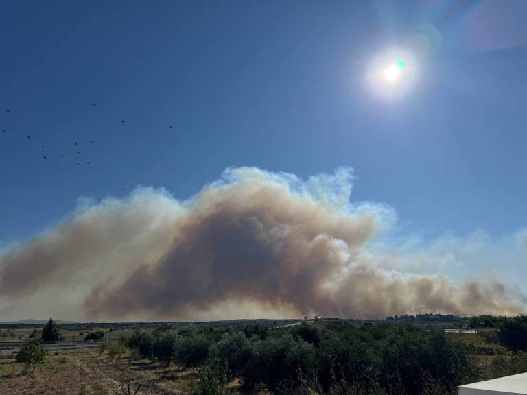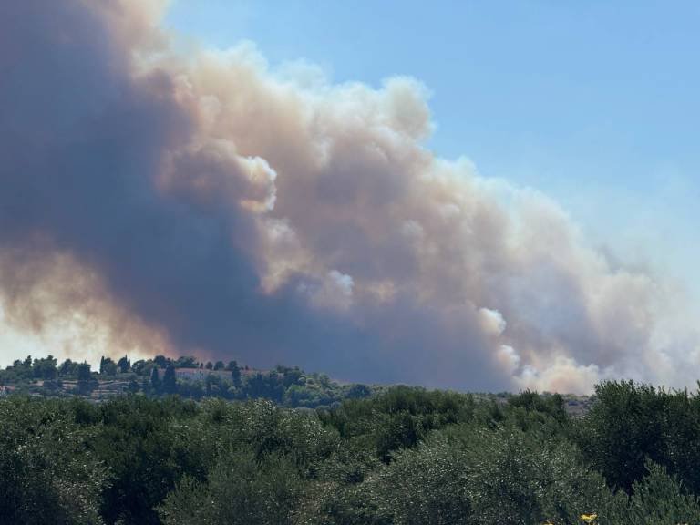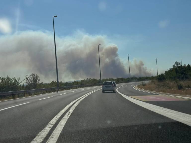 Že dopoldne je pri Šibeniku izbruhnil velik požar. Zajel je travo, nizko rastlinje in borov gozd.