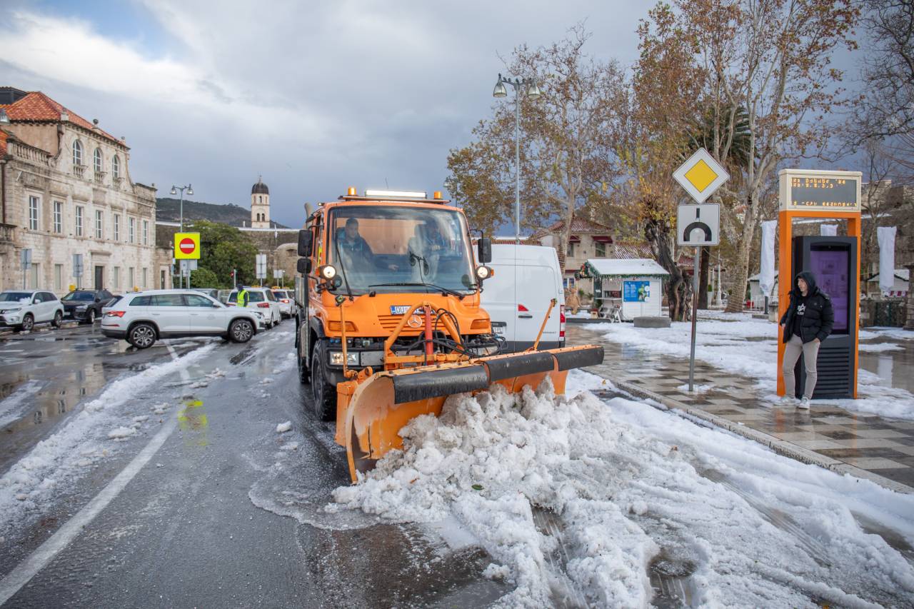 Dubrovnik je danes pobelila toča, ulice starega mestnega jedra pa so zaradi ledu postal drsališče.