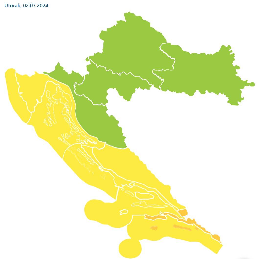 Državni hidrometeorološki zavod je za danes izdal oranžno vremensko opozorilo tudi za reško in dubrovniško regijo. Za območje Reke vremenoslovci opozarjajo pred nevihtami, na območju Dubrovnika pa svarijo pred visokimi temperaturami.